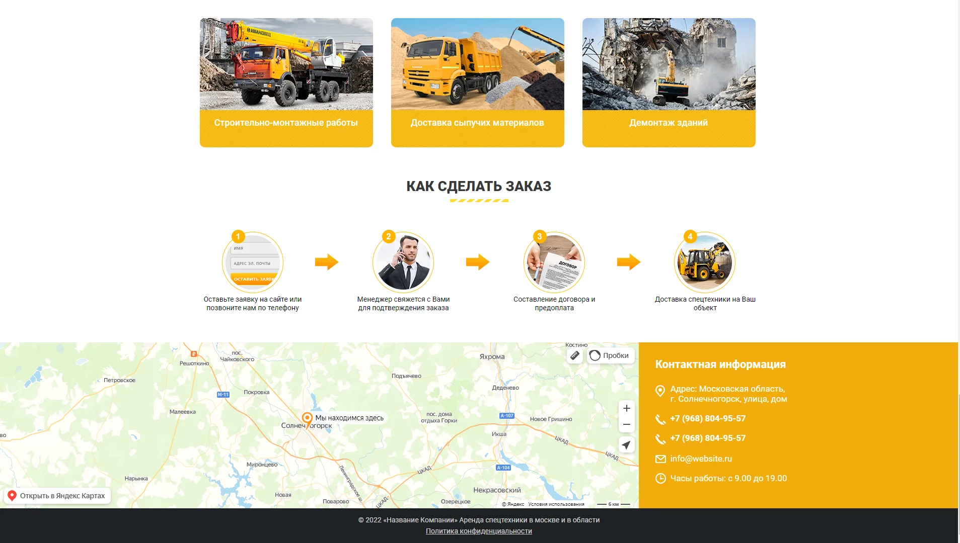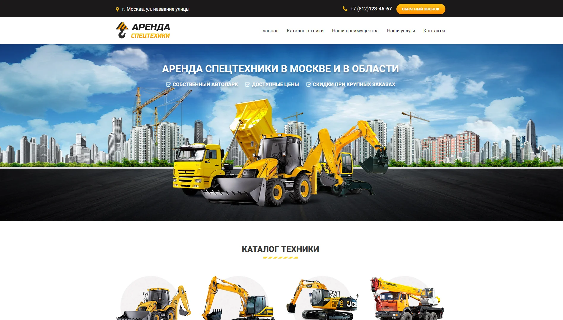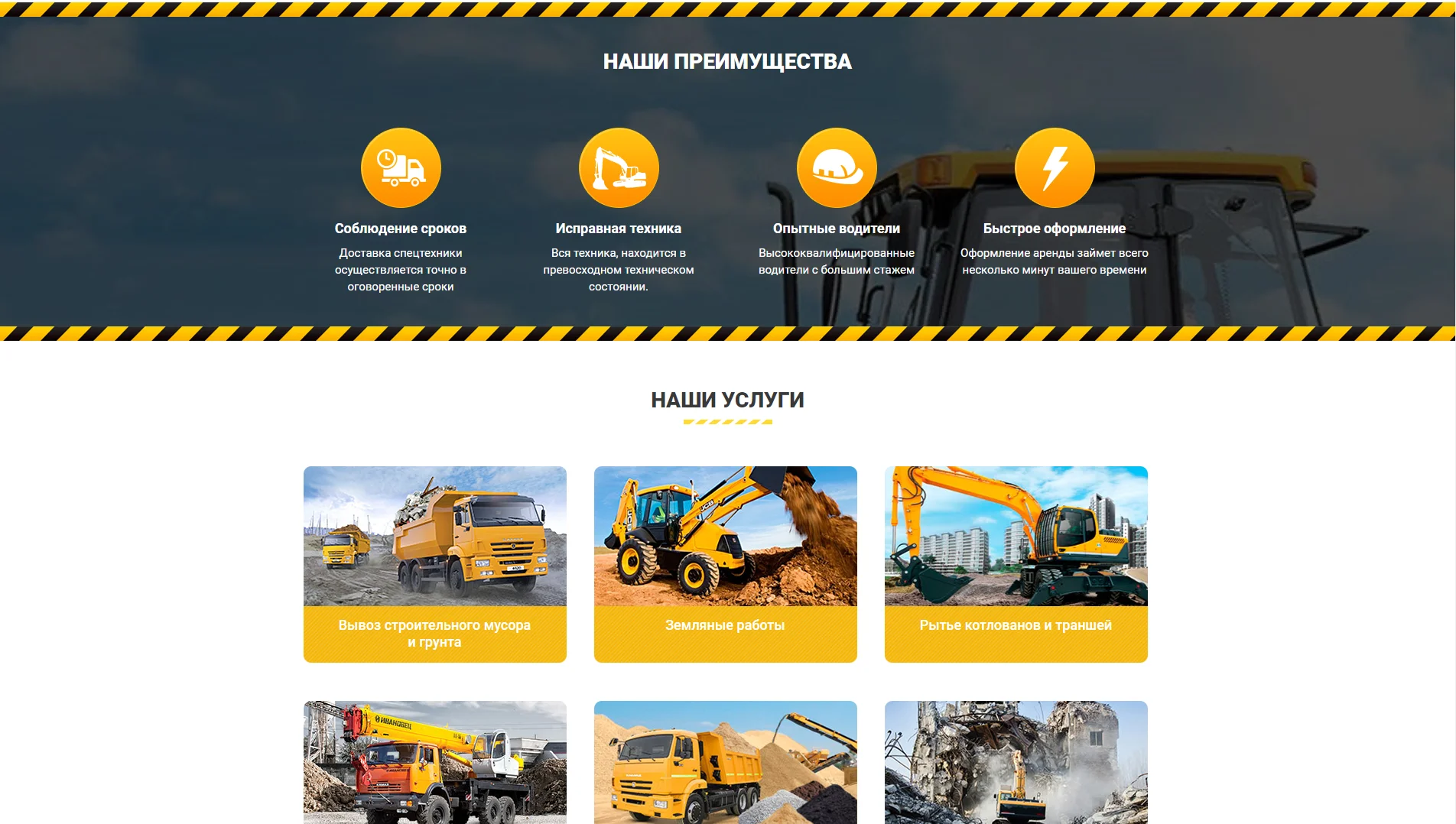 Легкий и запоминающийся сайт для компании аренды спецтехники.